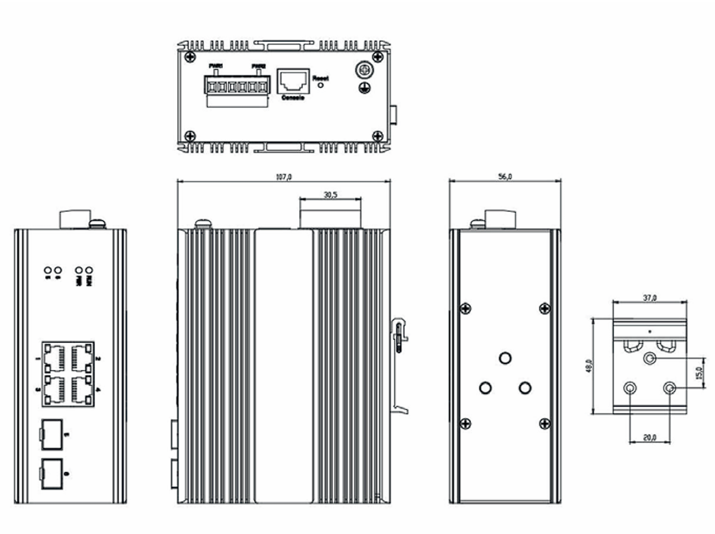 TIMS3200-4P2S | 4*10/100/1000Base-T (POE) + 2*100/1000Base-X, SFP slot |